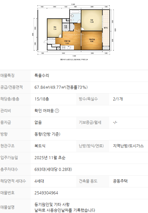 - 소형평형(39.85㎡, 약 12평형) → 전세·매매 수요가 한정적 (1~2인 가구 대상)