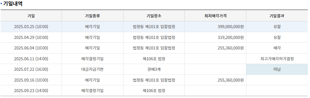 - 이전에 한 번 낙찰자가 미납으로 떨어진 것도 같은 이유일 가능성이 큼 (대출이 생각보다 안 나왔거나 자기자본 부족)
