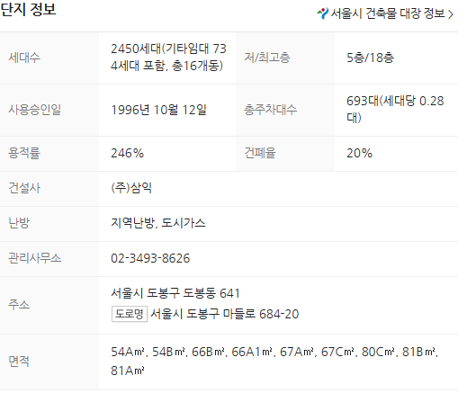 도봉동에 있는 서원아파트라고 세대수가 2천 세대가 넘는 대단지 아파트가