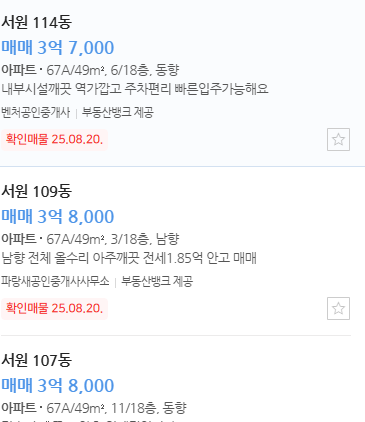 또 매물로 올라온 114동의 경우 평형수가 아래와 같아서.